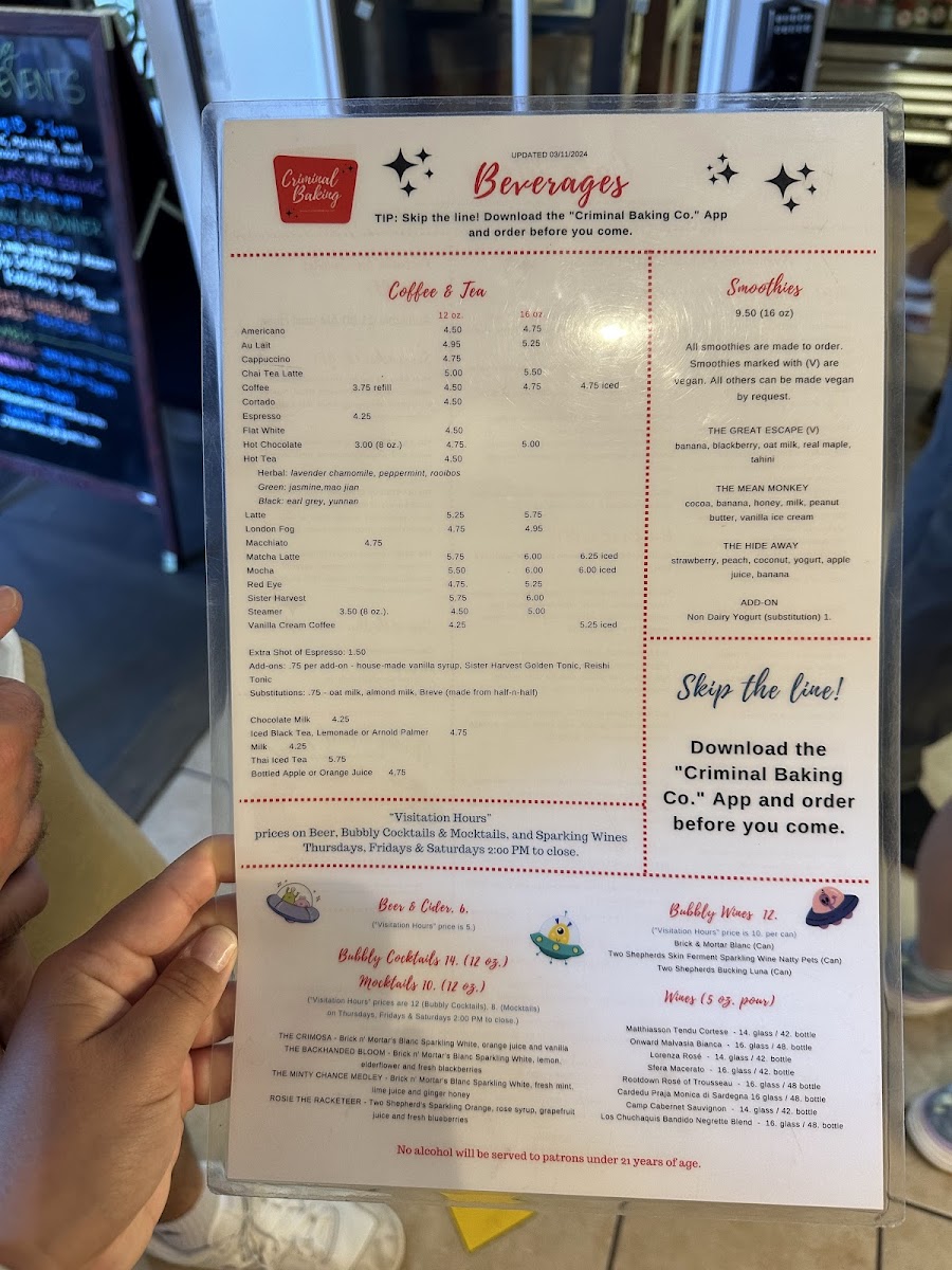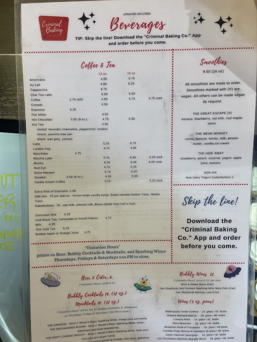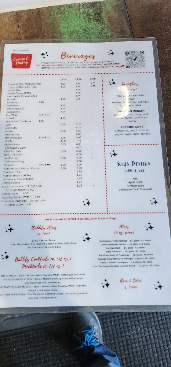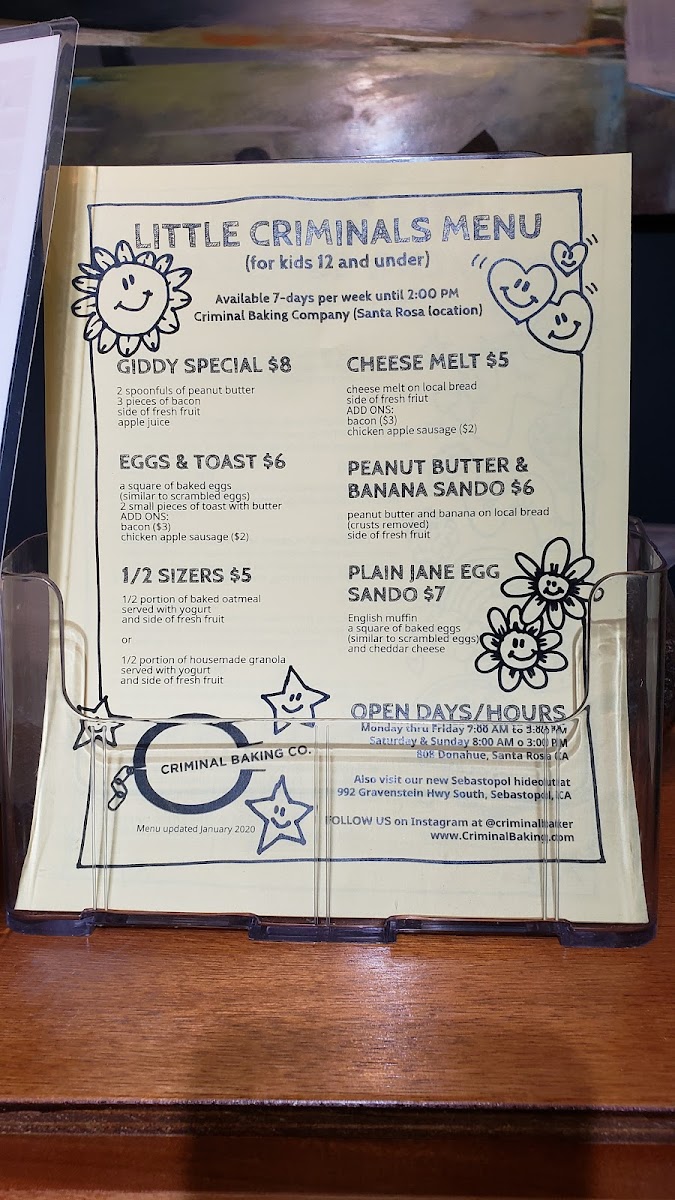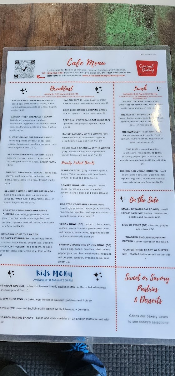 Criminal Baking Company Menu
