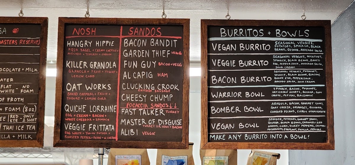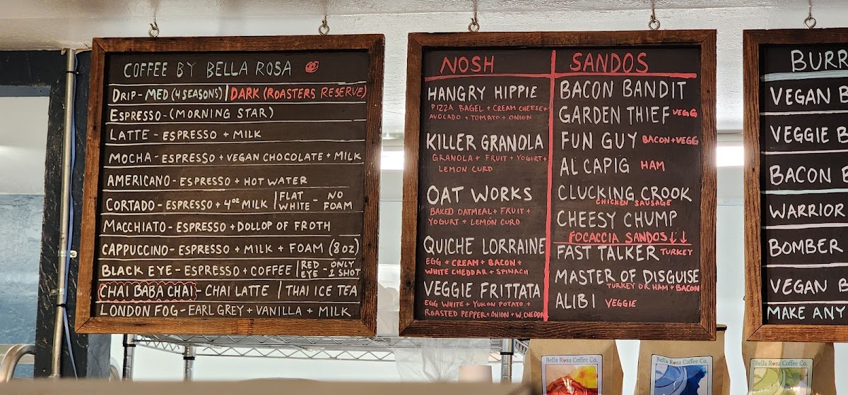 Among the selections, you’ll find a range of baked goods like almond bear claws and mixed berry cheesecake pies, alongside hearty breakfast sandwiches and inventive smoothies. These items complement the cozy, inviting atmosphere — a place where casual bites and comforting drinks come together throughout the day.